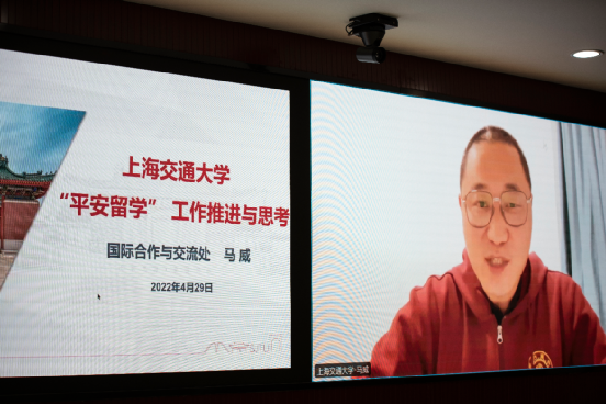 上海交通大学国际合作与交流处副处长马威同志作为平安留学协办院校代表分享了相关工作经验。该校通过对点摸排、对点培训、对点沟通和对点跟踪等多种方式,帮助学生做好行前培训工作。